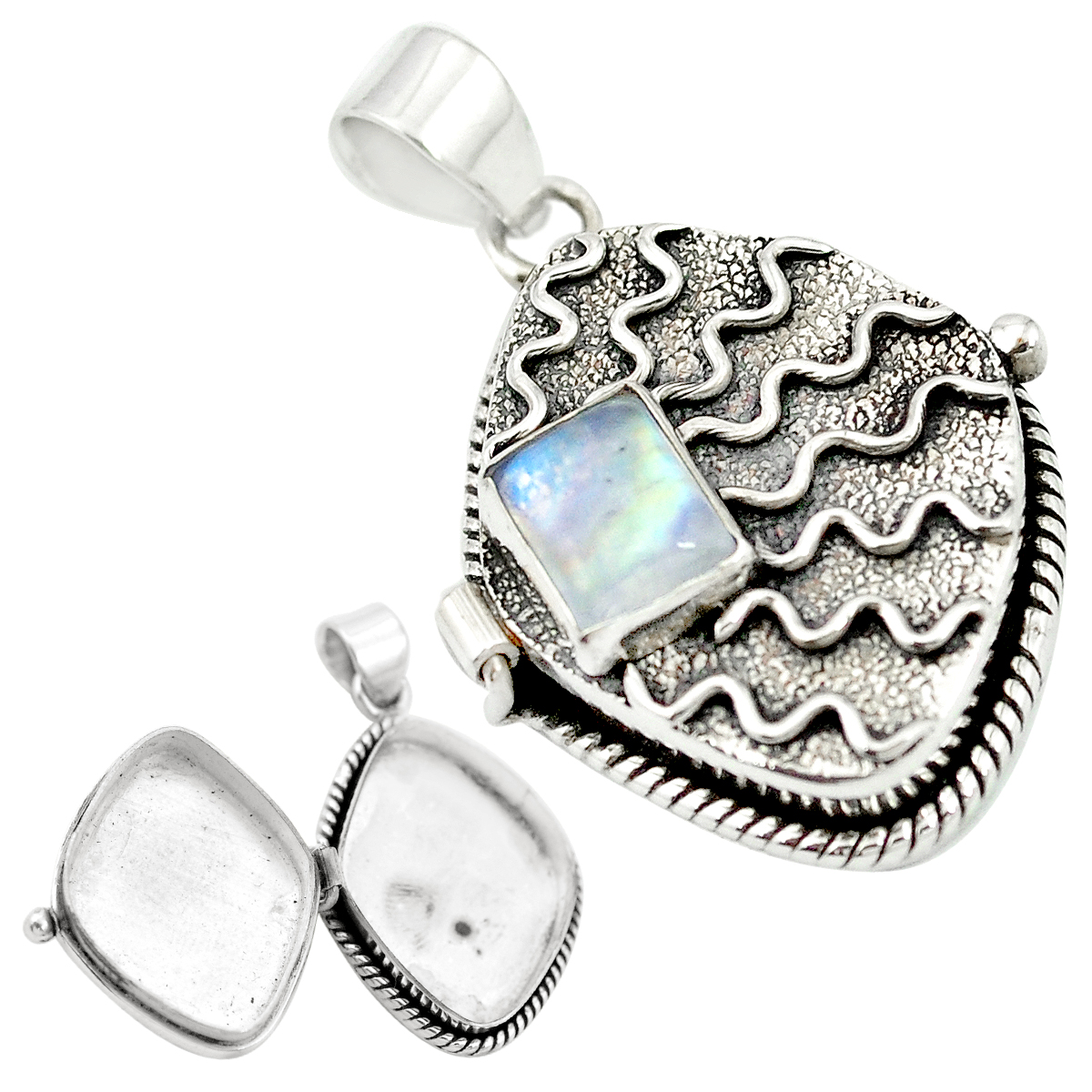 Set in Sterling Silver, Opens like a box, Moonstone on the top